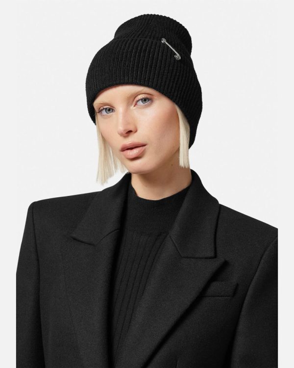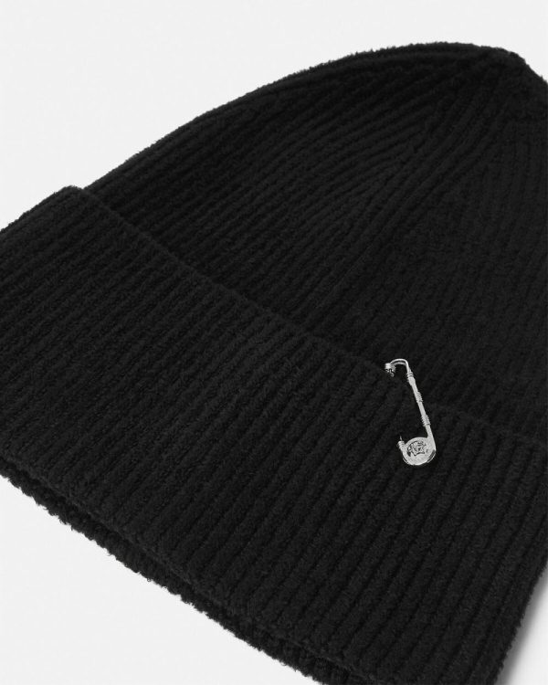 This ribbed knit beanie is crafted from soft chenille and embellished with the signature Safety Pin hardware.