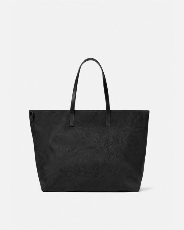 A spacious tote bag for parents, featuring a jacquard Barocco Kids tonal pattern, that functions as a newborn diaper bag. Made from nylon canvas, the practical style holds a soft padded changing mat, has a detachable zipped pouch and a detachable shoulder strap.