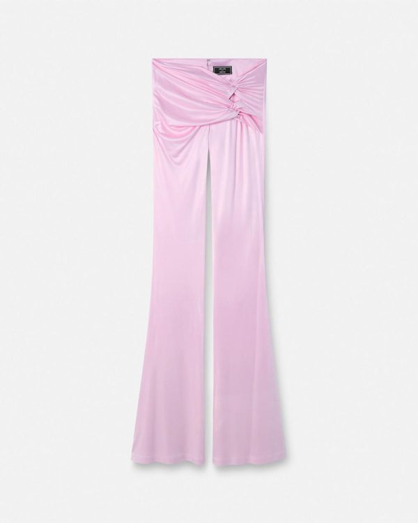 Versace presents Dua Lipa x Versace—a capsule collection co-designed with Dua Lipa. These flared fluid jersey pants feature knotted cutout details for a draped finish.