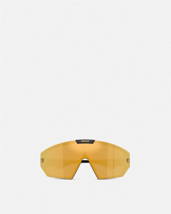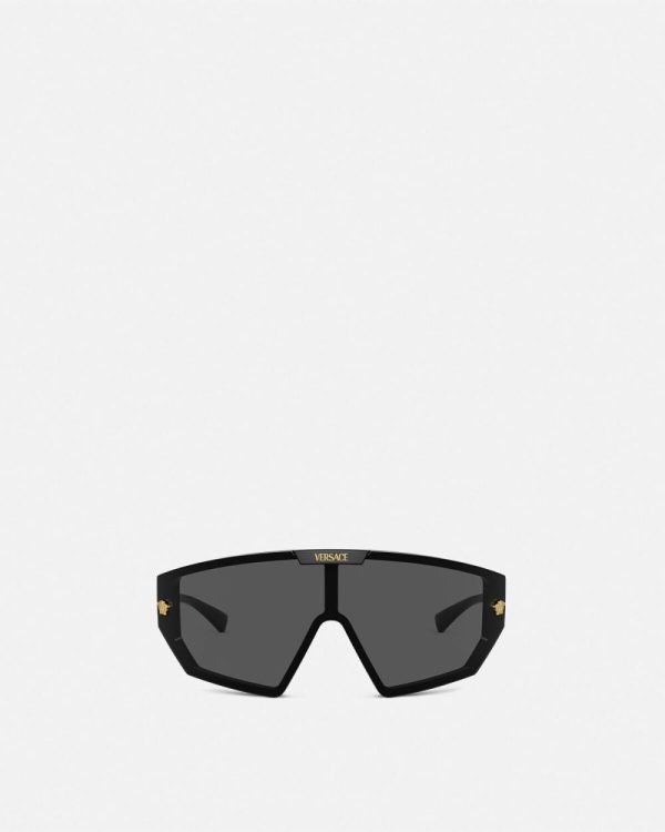 These maxi mask sunglasses feature Medusa hardware at the temple hinges and are accented with a logo at the nose bridge.