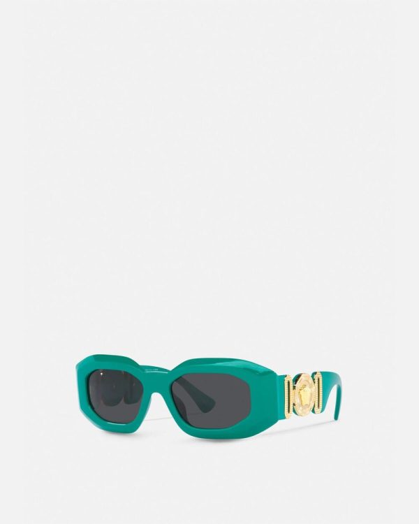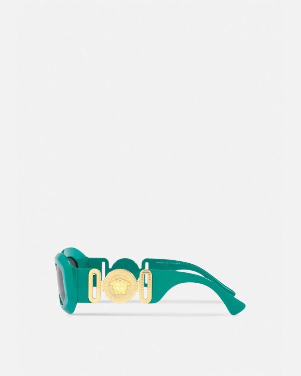 Inspired by ’90s hip-hop culture, these sunglasses feature acetate frames and wide Medusa-embellished temples. The rectangular shape is finished with dark tinted lenses.