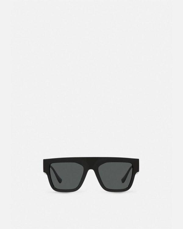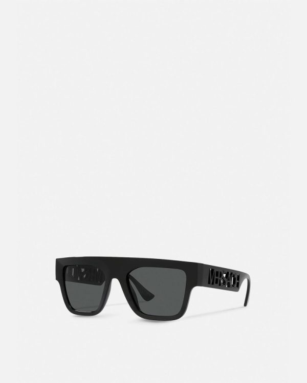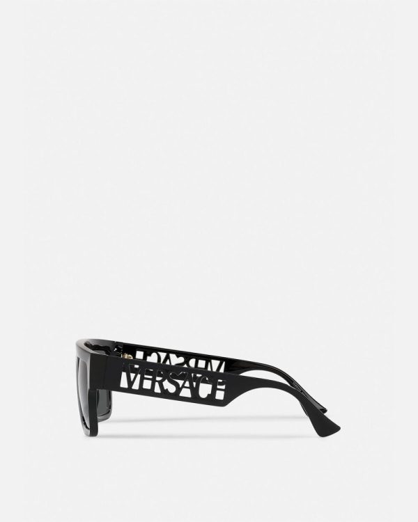 A squared shape, these sunglasses have acetate frames and a tonal, openwork, vintage-inspired Versace logo engraved at the temples.