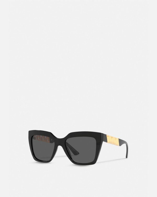 Accented by open-work La Greca hardware at the temples, these square shaped sunglasses come with acetate frames.