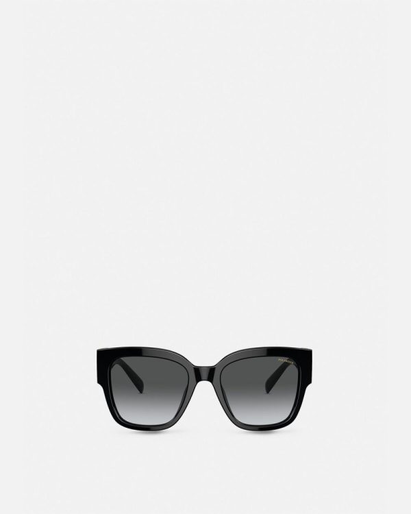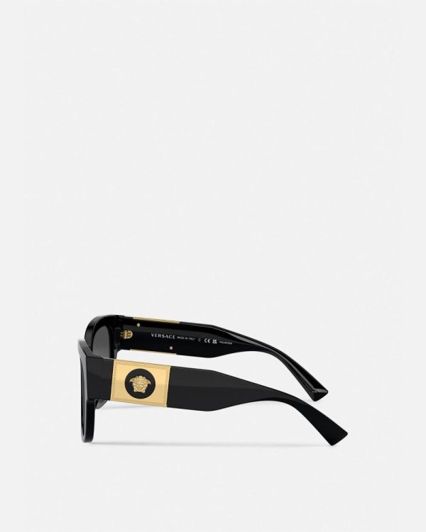 In a thick acetate, squared shape, these sunglasses are accented by a Medusa emblem at the side and feature polar lenses.
