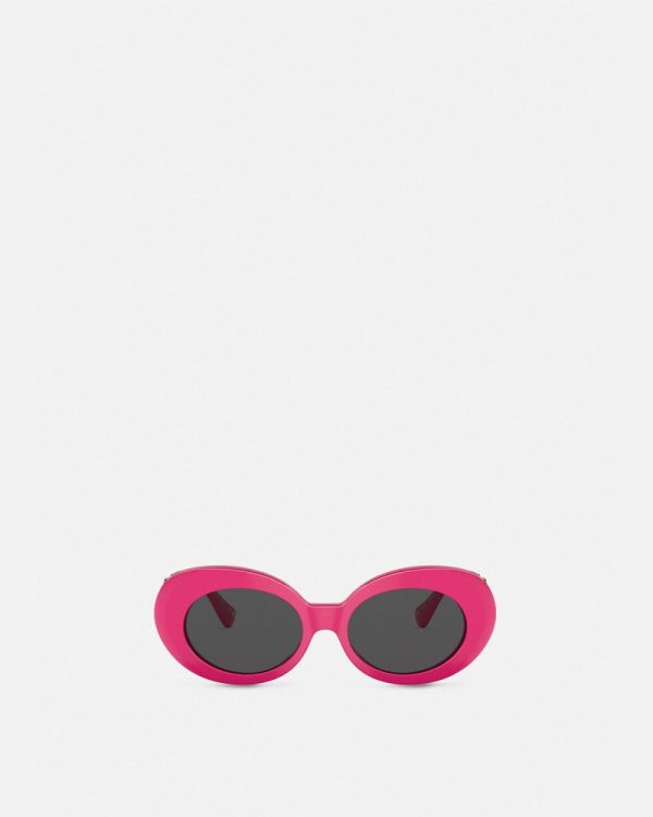 Inspired by ’90s hip-hop culture, these sunglasses feature acetate frames and wide Medusa-embellished temples. The oval shape is finished with dark lenses.