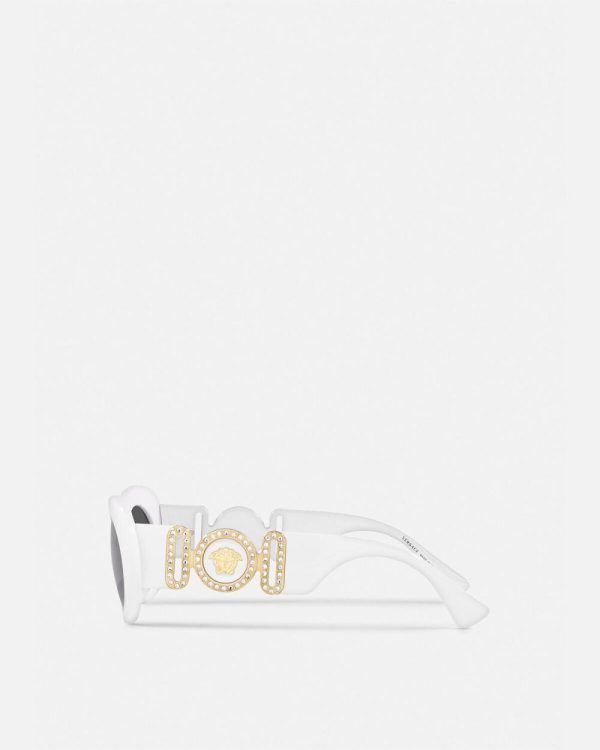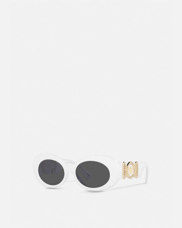Inspired by ’90s hip-hop culture, these sunglasses feature acetate frames and wide Medusa-embellished temples. The oval shape is finished with dark lenses.