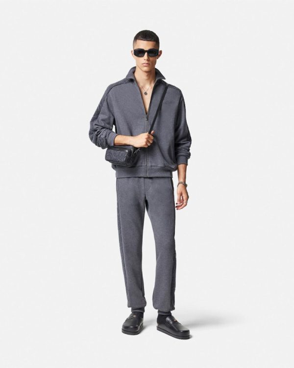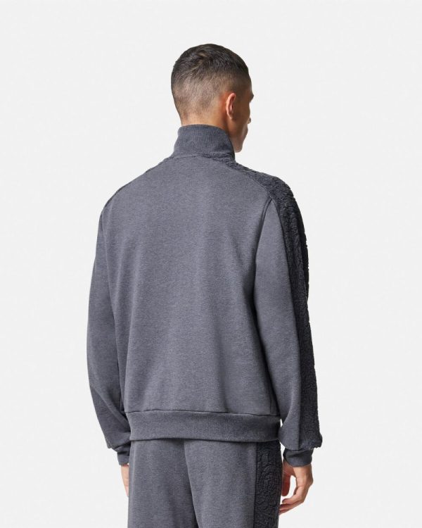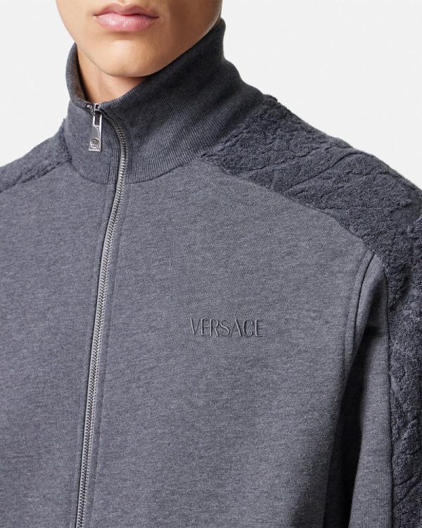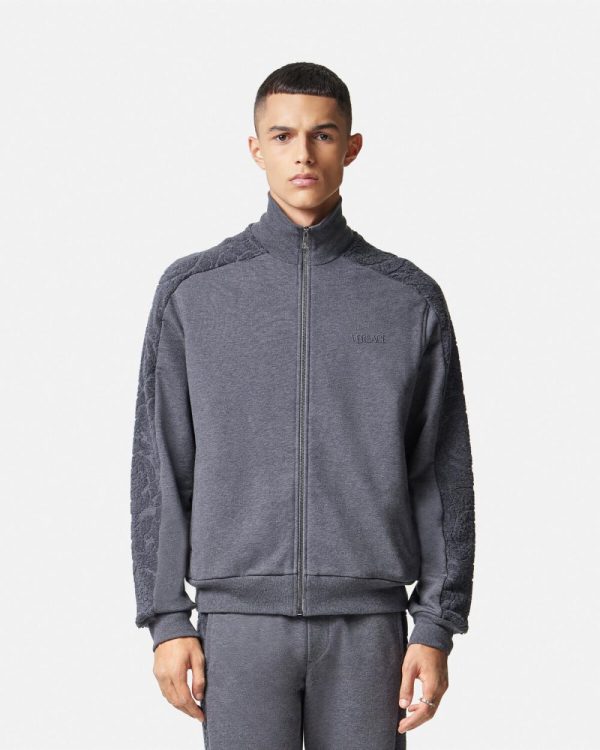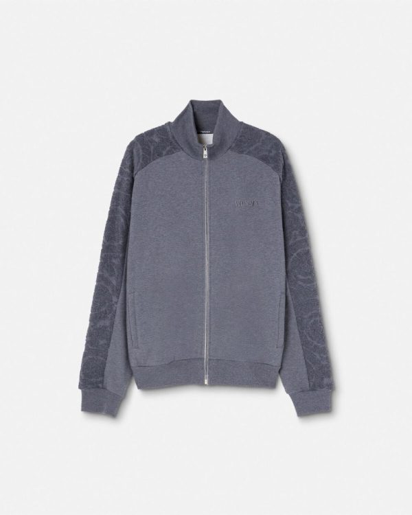 Cotton-jersey zip-up sweatshirt featuring a tonal terry towelling jacquard Barocco motif along the shoulder and sleeves.