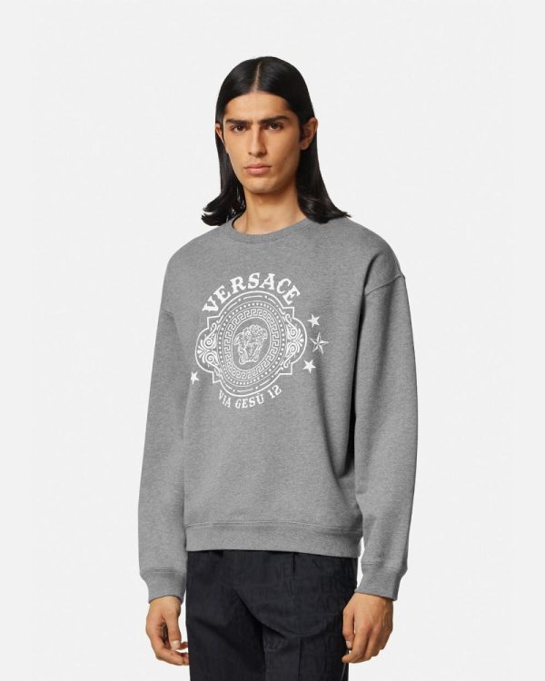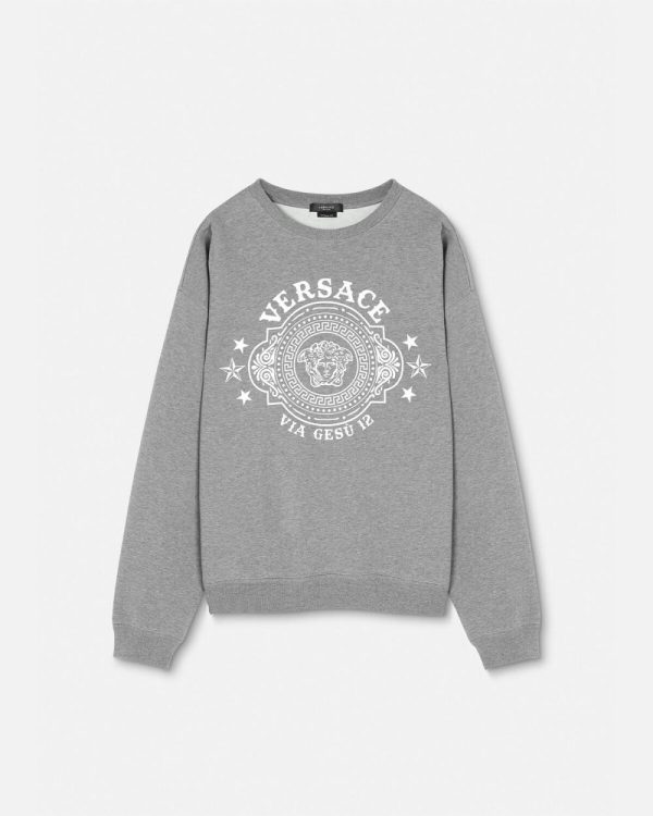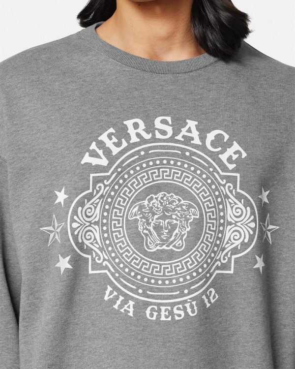 This sweatshirt has a regular fit with slightly dropped shoulders and a crewneck design, featuring a Medusa Badge motif with archival design elements.