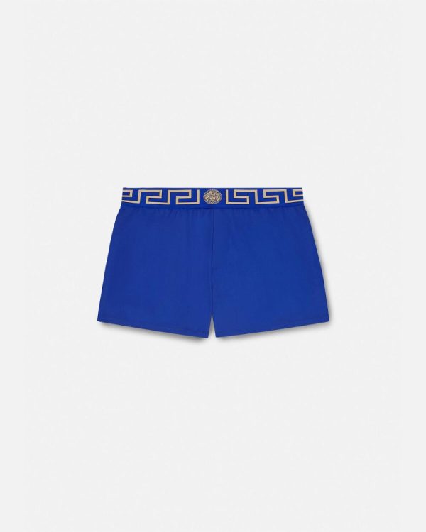 These swim shorts feature the Greca border with a central Medusa motif on the elastic waistband. For hygiene purposes we advise to try on this item with personal underwear underneath.