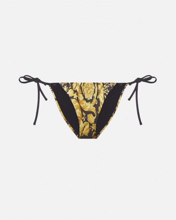 These tie-string bikini bottoms feature the signature Barocco print. This beachwear style can be paired with the bikini top in the matching print. For hygiene purposes we advise to maintain the adhesive protective slip while trying on this item.
