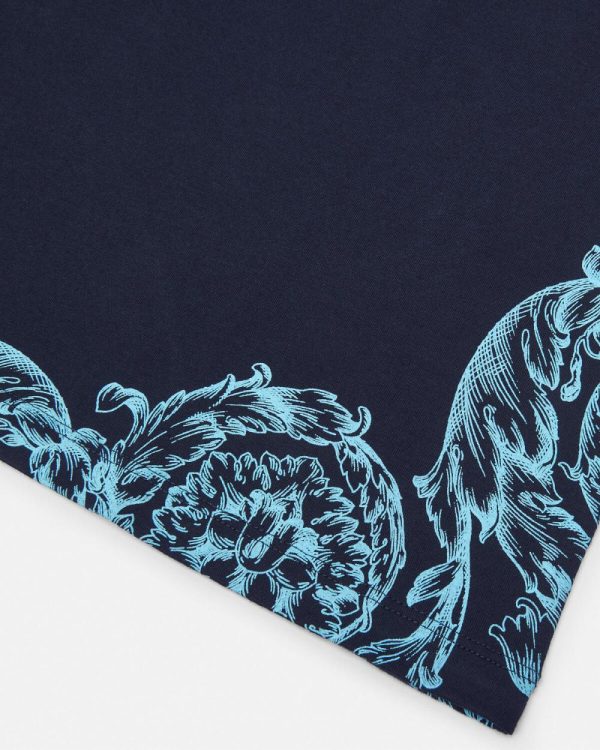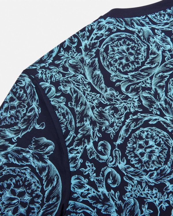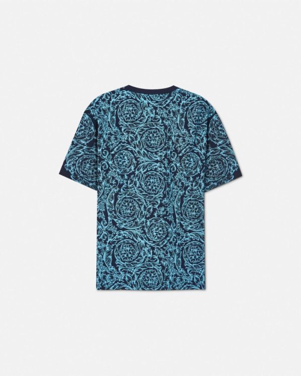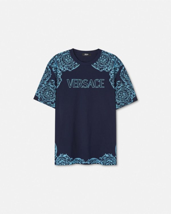 Short-sleeved cotton T-shirt featuring an outlined Barocco motif and Versace logo.