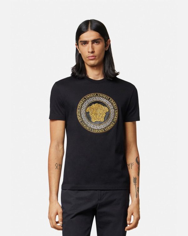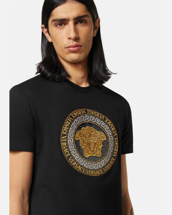 This short-sleeved cotton T-Shirt features an embroidered Medusa logo with crystal embellishments.