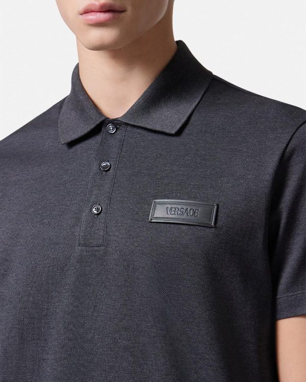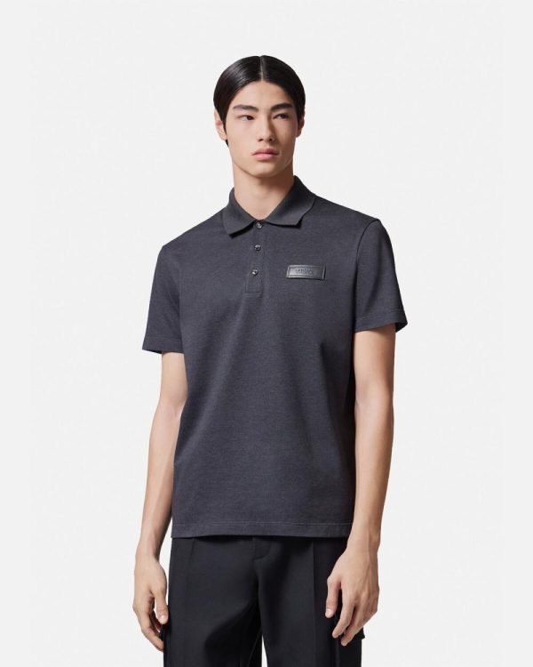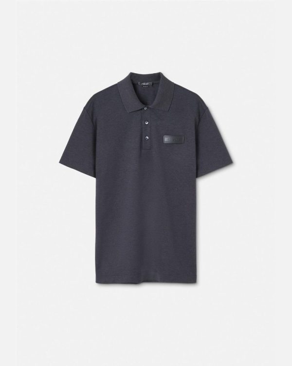 This short-sleeved polo shirt is made from cotton piqué with an embossed leather logo patch detail.