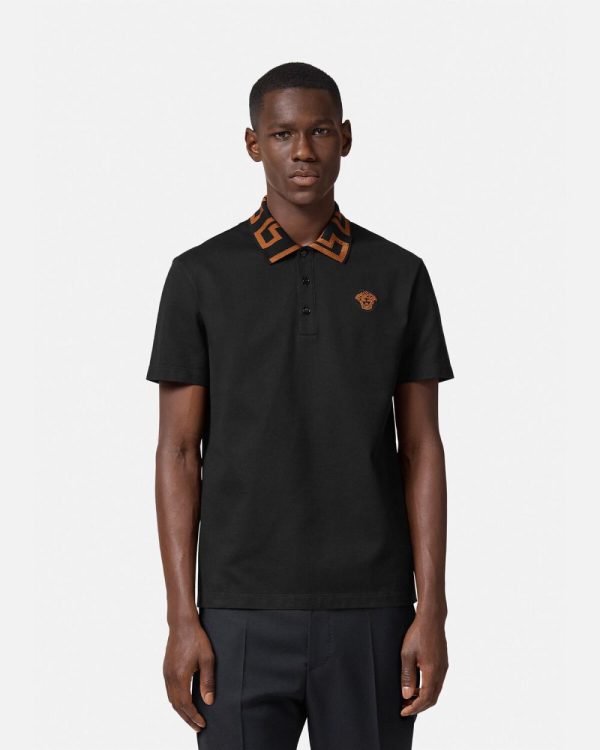 Classic cotton piqué polo shirt embellished with an embroidered Medusa motif and Greca collar.