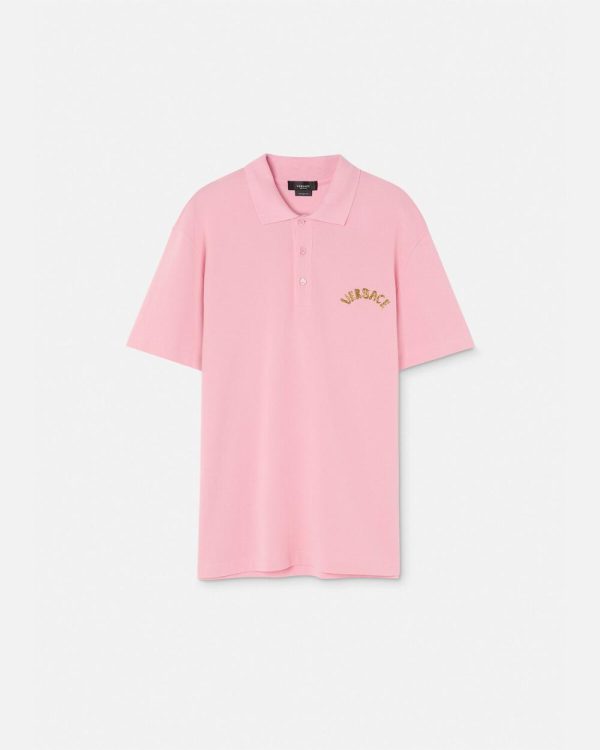 This short-sleeved polo shirt is made from cotton piqué with a three-button placket and features an embroidered Versace logo at the chest in the Seashell Baroque motif.