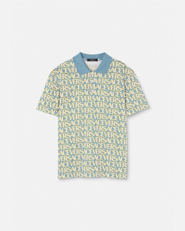 This short-sleeved polo shirt is made from cotton piqué and features a panelled design with a front Versace Allover logo and back Seashell Baroque Polka Dot print.
