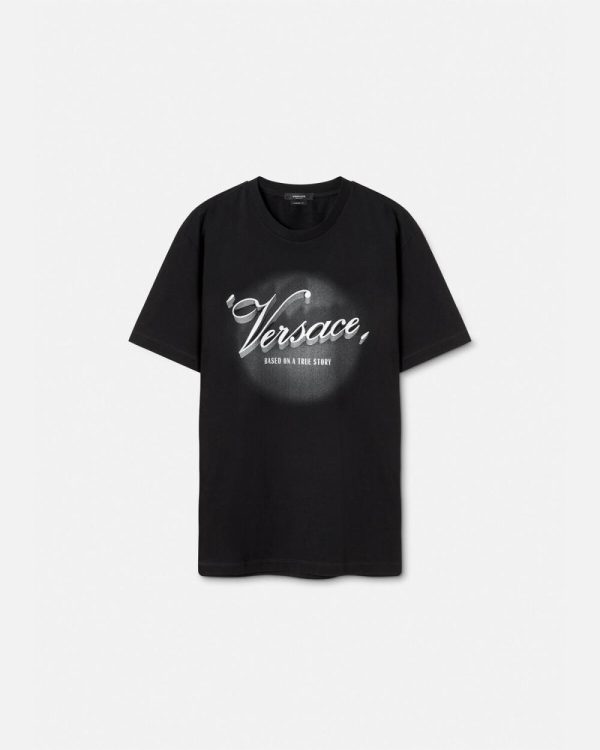 This short-sleeved cotton T-shirt features a graphic placement print representative of the modernity and glamour of Hollywood, with a Versace twist.