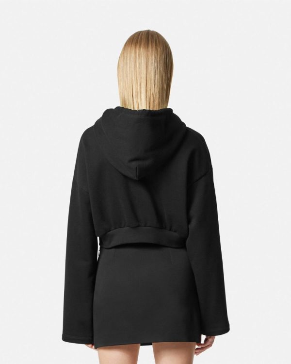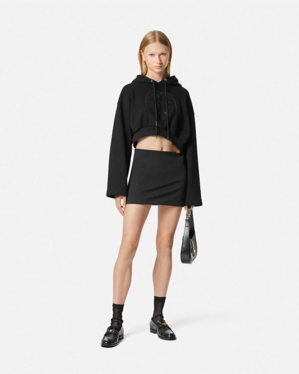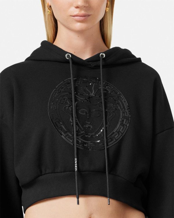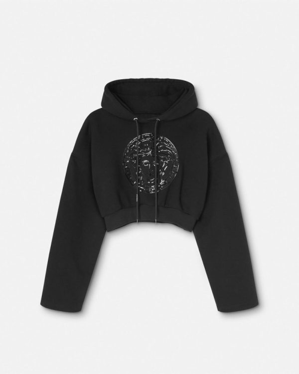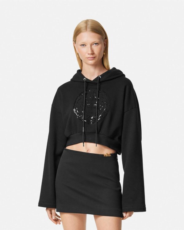 T-Shirts & Sweatshirts | Women Versace Embellished Medusa Crop Hoodie Black