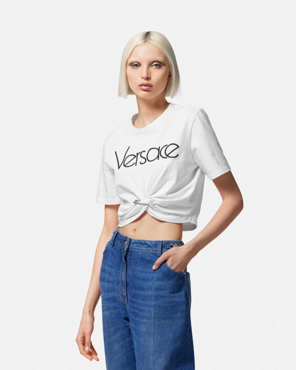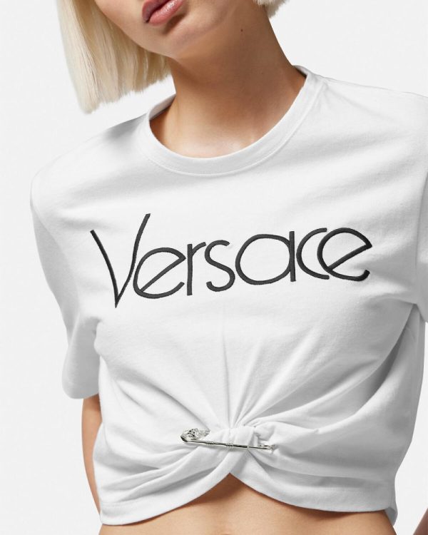 T-Shirts & Sweatshirts | Women Versace Safety Pin Re-Edition Logo T-Shirt Blackwhite