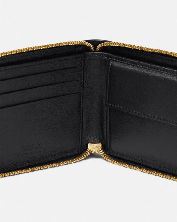 This bifold wallet is crafted from leather and features the Medusa Biggie hardware. The interior is complete with a note compartment, coin pouch and card slots.