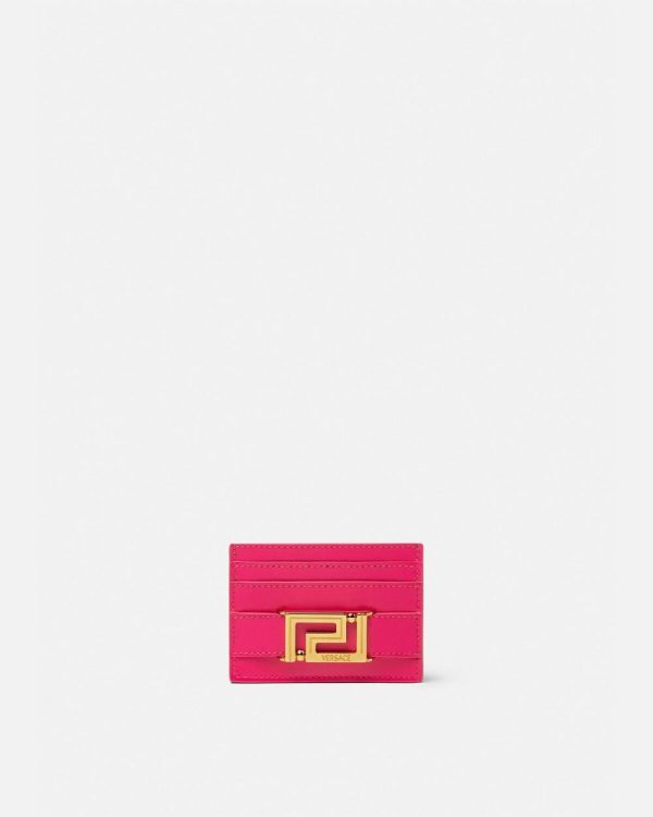 Crafted from leather, this Greca Goddess card holder is accented by the Greca chain hardware with four card slots and a central slip compartment.