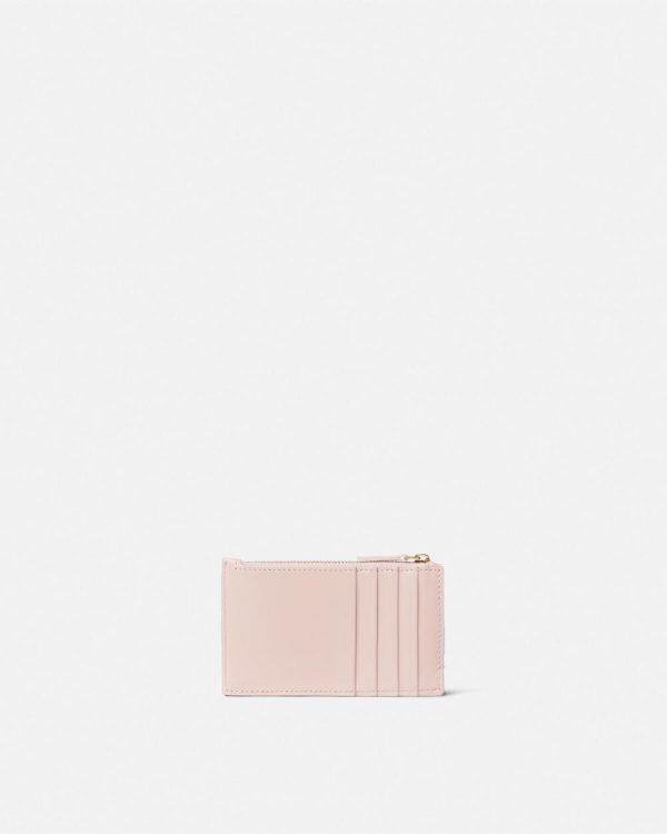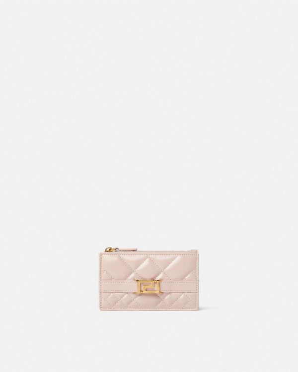 A zipped design, this card holder is crafted from quilted leather and features Greca chain hardware—a signature Versace symbol, constructed from one uninterrupted line.