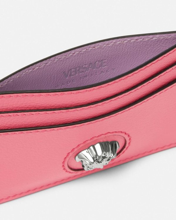 An elegant accessory to accompany your La Medusa bags, this card case is adorned with a three-dimensional Medusa plaque – the same décor that was discovered on the doors of the brand’s first headquarters in Milan.