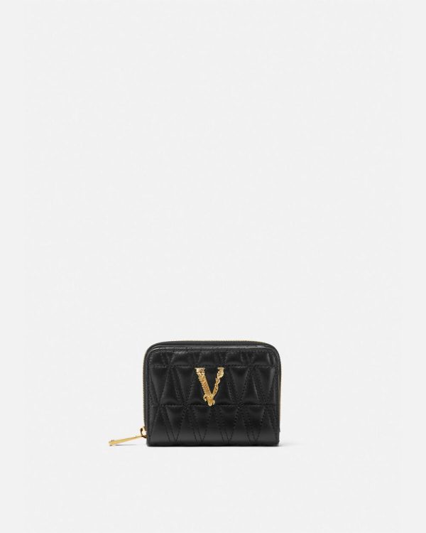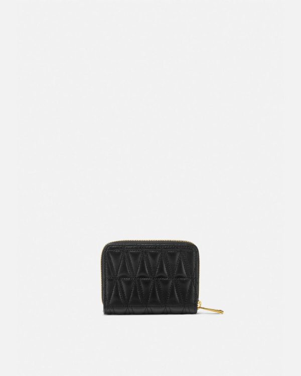 A compact zip wallet crafted from quilted V-patterned leather, accented by Barocco V hardware, complete with multiple card slots.
