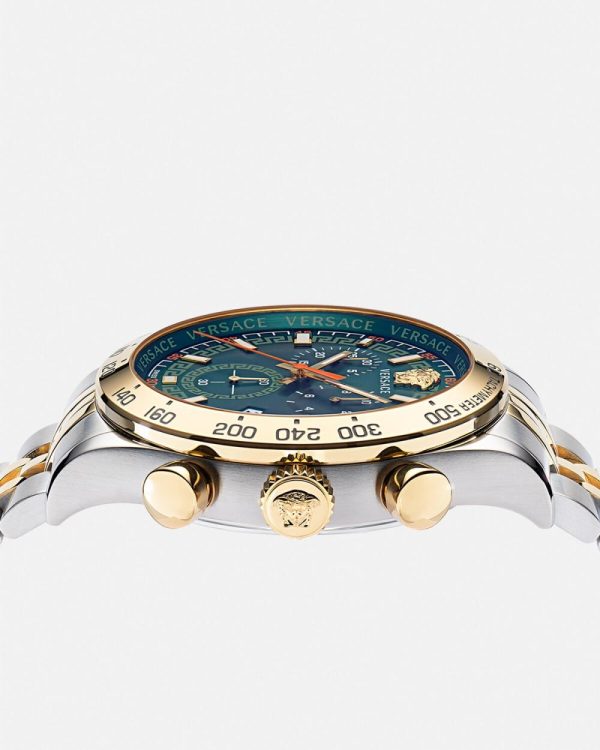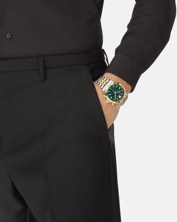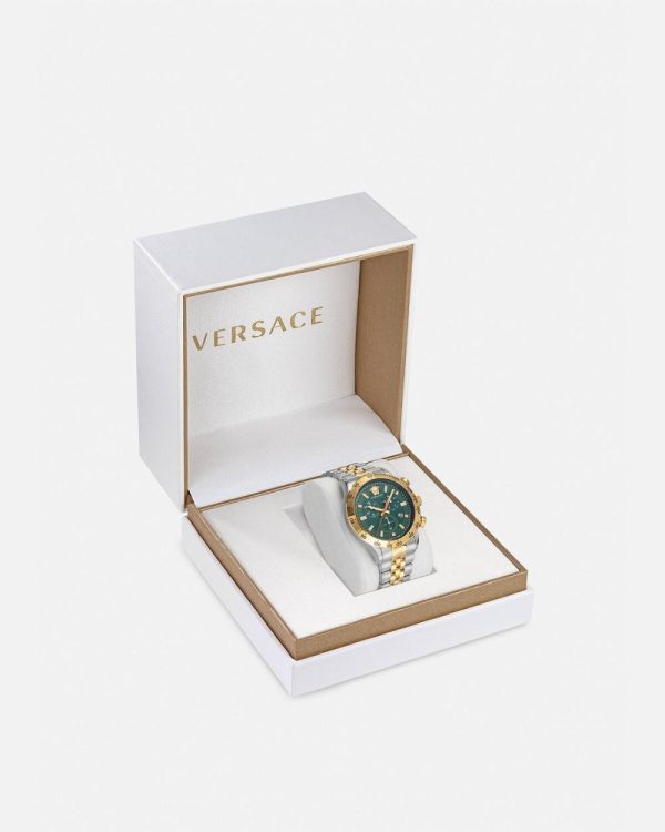 - Dial: Green dial with Versace logo and Medusa head at 12h