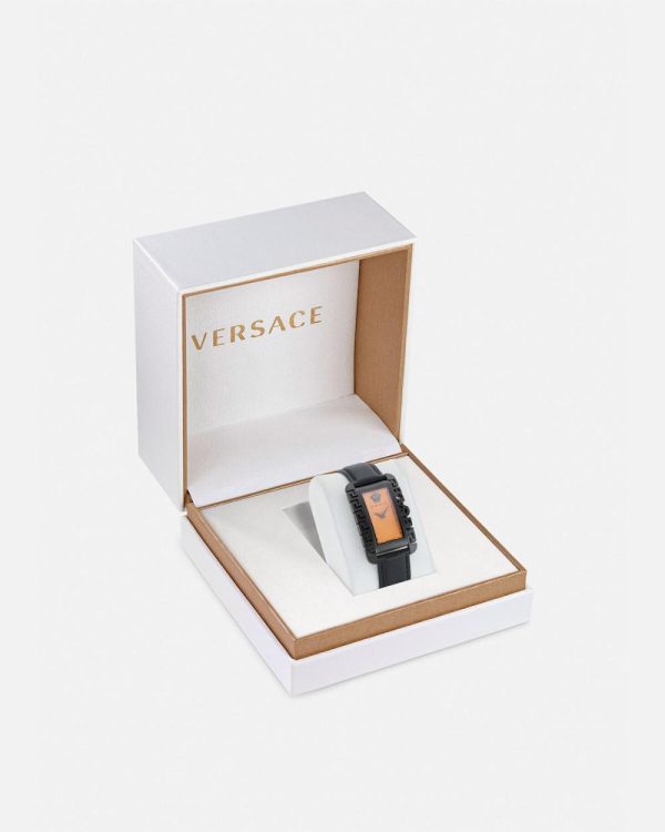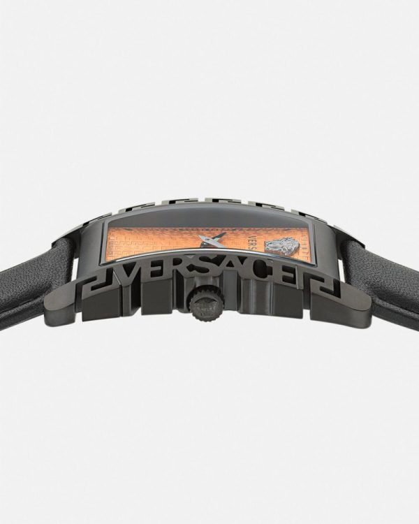 - Dial: Orange dial with Versace lettering and Greca pattern / Medusa and Versace logo at 12h