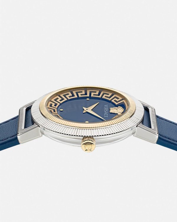 - Dial: Blue dial with Greca on the inner dial; Medusa and Versace logo at 12h