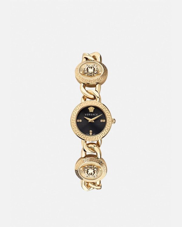 - Dial: Black dial with Versace logo and Medusa at 12h